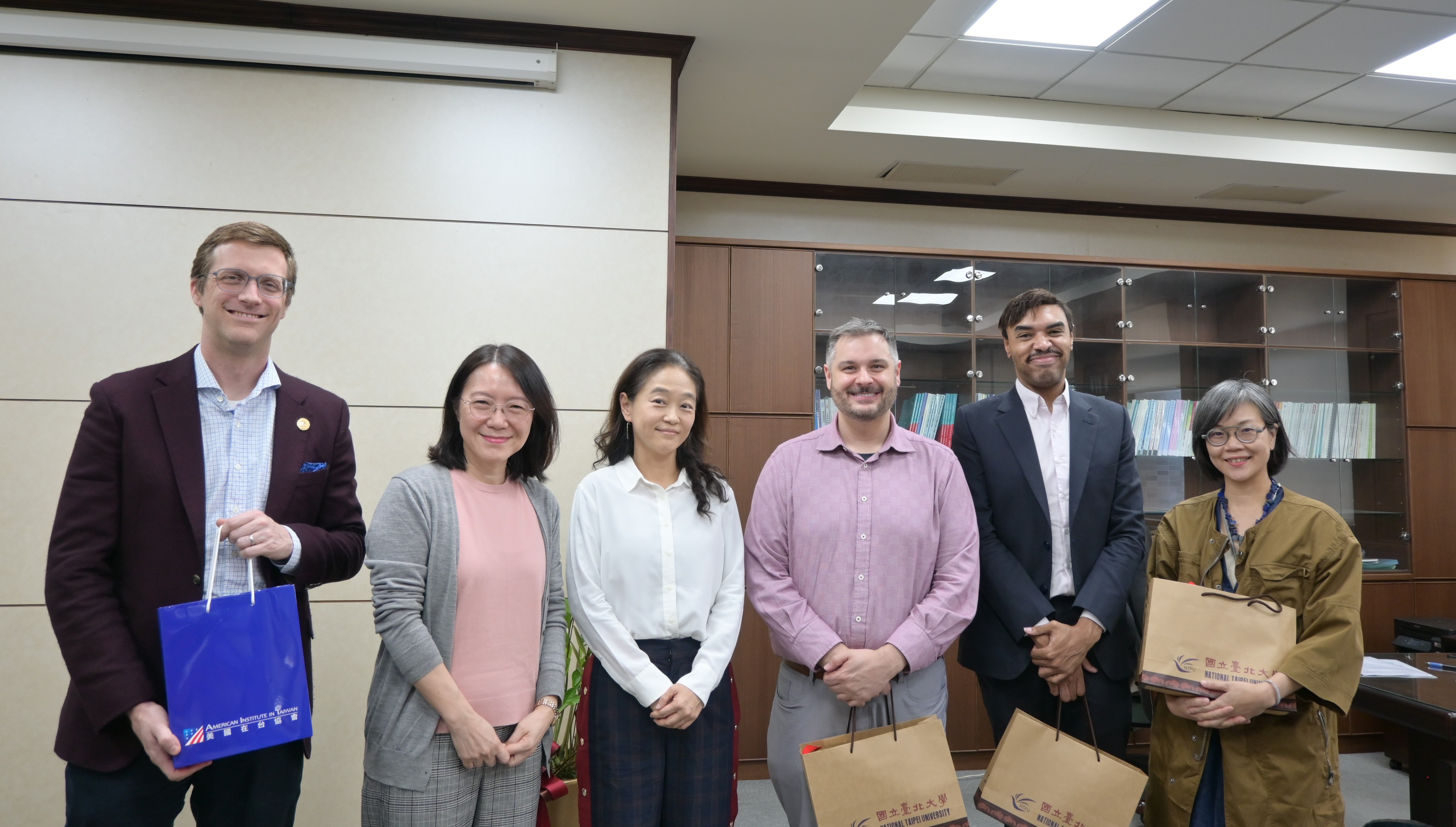 美國在台協會(下稱AIT)近日蒞臨本校進行交流訪問,由陳婉琪教務長、韋岱思國際長及語言中心翁素涵主任接待。AIT方由美國國務院英語教育辦公室駐馬尼拉區主任Jeff McIlvenna帶領,英語研究獎助學者Jye Smallwood等一行來訪。
